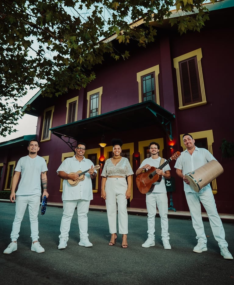 Repertório Seleto: Além das nossas composições autorais, apresentamos um repertório que transita com elegância entre o melhor do samba, MPB e ritmos brasileiros, garantindo que a música seja um elemento de conexão e celebração.